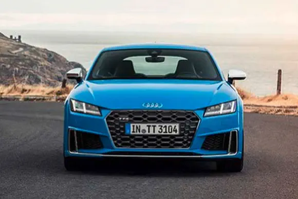 Aan de voorkant valt op dat diverse elementen van de snelle TT RS zijn overgenomen op de TTS. Of deze verfraaiingen ook voor de reguliere TT zijn bedoeld is nog niet bekend, maar de bumper met grotere luchtinlaten, de honingraat grille en de diverse aluminium accenten staan de coupé in ieder geval goed.