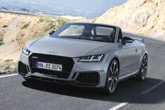 Audi heeft de vernieuwingen van de reguliere TT doorgevoerd op de snelste uitvoering, de TT RS. Specifiek voor de topuitvoering zijn er nieuwe, met hoogglans zwarte sierpanelen afgewerkte dorpels en een nieuwe achterspoiler. Die laatste heeft niet alleen een esthetische functie, maar ook een aerodynamische.