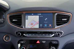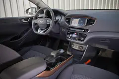 De Ioniq is helemaal up-to-date op het gebied van infotainment en connectiviteit. Het centrale touchscreen verbindt je telefoon desgewenst via Android Auto of Apple Carplay of laadt ‘m draadloos op. Het centrale scherm staat in verbinding met de boordcomputer rechts van de snelheidsmeter, die te bedienen is vanaf het stuur. Daar kun je bijvoorbeeld verbruiksinformatie of navigatieaanwijzingen op aflezen. Met de P/R/N/D-knoppen op de hoge middentunnel bedien je de automatische versnellingsbak. Een fijne toevoeging aan de elektronische parkeerrem is de Auto-hold functie, die voorkomt dat de auto gaat ‘kruipen’ als je wacht voor het stoplicht.