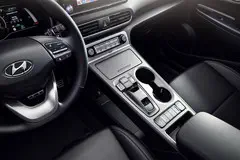 In de cabine is de pook vervangen door knoppen op een verhoogde middentunnel. Je hoeft slechts de gewenste knop in te drukken om vooruit of achteruit te rijden of om in te parkeren. In plaats van het traditionele instrumentarium vind je in de nieuwkomer een digitaal beeldscherm. En in vergelijking met de Kona op benzine heeft de Electric standaard een multimediasysteem.