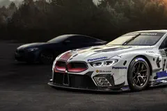 BMW onthult de 8 Serie Coupé de avond voor de start van de 24 Uur van Le Mans. BMW neemt dit jaar deel aan het beroemde race-evenement. De auto waarmee dat gebeurt is de raceversie van de nieuwe 8 Serie, de M8 GTE. Op de foto zie je de racewagen met op de achtergrond de straatversie.