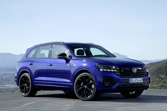 De Touareg R is aangekleed met diverse donkere accenten en 20 inch wielen. De auto die je op de foto’s ziet is zelfs van 22 inch wielen voorzien, die optioneel verkrijgbaar zijn. Ook het interieur is sportief aangekleed, met onder meer sportstoelen en donkere bekleding.