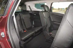 De achterste stoelen, een optie van 800 euro, zijn vanwege de beperkte hoofdruimte met name geschikt voor kinderen. De instap naar achteren heeft Renault goed geregeld, want de middelste stoelen laten zich slim naar voren klappen. De stoelen helemaal neerklappen kan met een bedieningspaneeltje in de kofferbak of via het centrale touchscreen. Dat gaat razendsnel en en de hoofdsteunen worden automatisch ingeschoven.