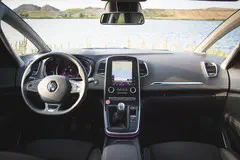 Binnenin wijkt de Grand Scénic niet af van de ‘normale’. Een opvallende, staande middenconsole herbergt een groot en eveneens staand aanraakscherm. De versnellingshendel zit ook in de middenconsole en de gebruikelijke middentunnel ontbreekt. In plaats hiervan monteert Renault een grote, verschuifbare bak waar veel, heel veel spullen in kunnen. Het dashboard is voorzien van een fraaie zachte toplaag, die bij diverse uitvoeringen voorzien is van stiksels die het luxegevoel verhogen.