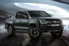 Volkswagen tuigt de Amarok op als Dark Label. Deze gelimiteerde oplage is te herkennen aan de donkergrijze en zwarte aankleding.